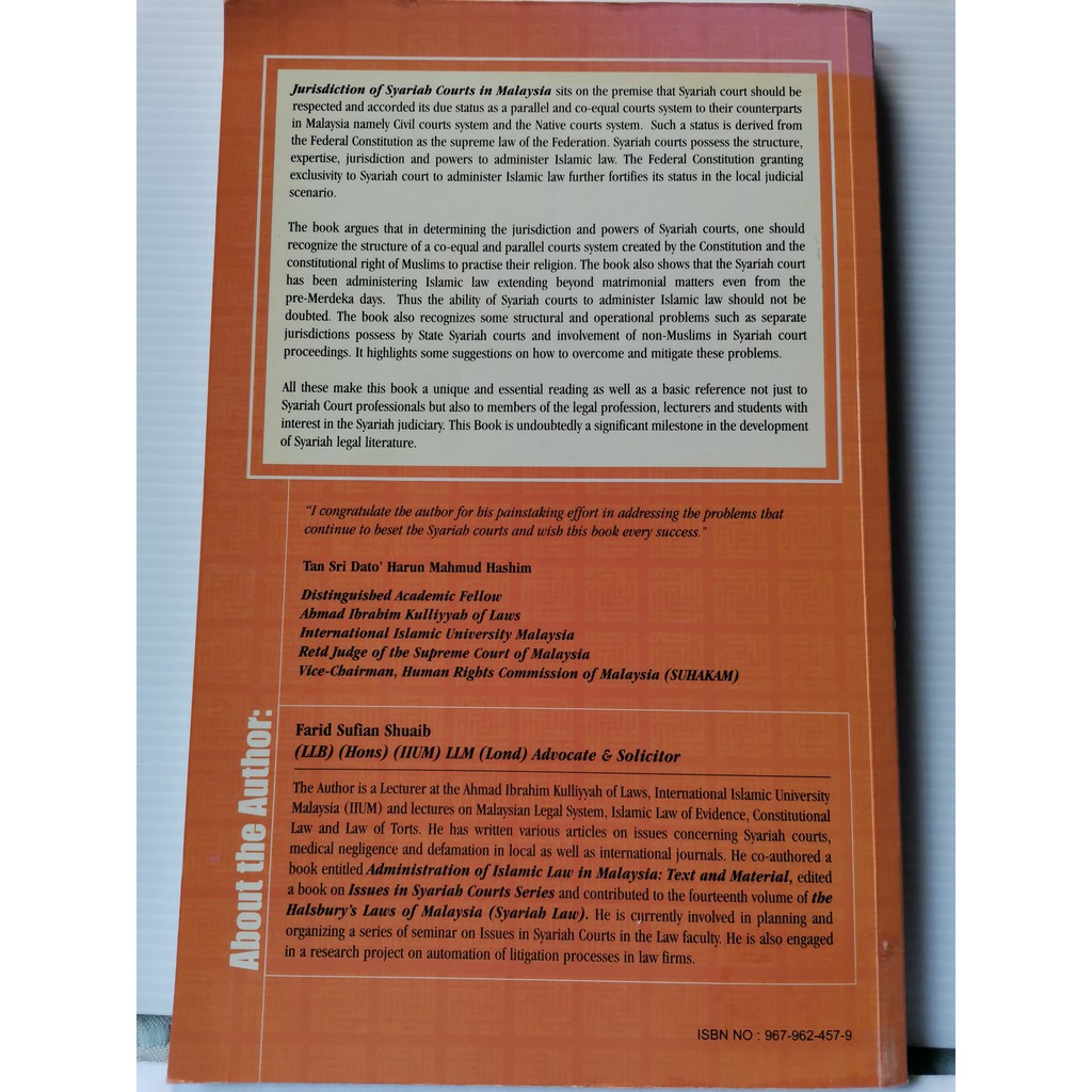 The syariah court system is one of the two separate system of courts which exists in malaysian legal system. The question over whether the syariah courts have jurisdiction over a particular matter has emerged as a significant issue in malaysia. Syariah (the malay spelling of sharia) refers to sharia law in islamic religious law and deals with exclusively islamic laws, having jurisdiction upon every muslim in malaysia. .origins of islamic courts in divided societies: Shariah law in malaysia is limited to islamic personal laws and govern under shari'ah court jurisdiction of every states.