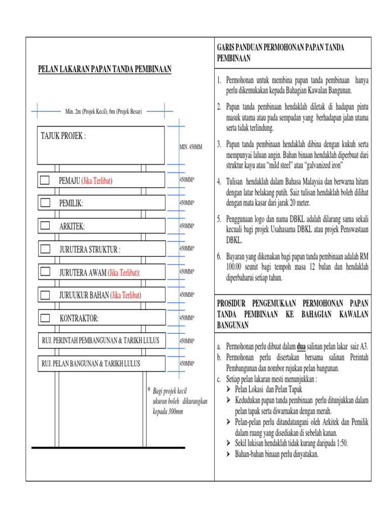Banyak ditemui kata yang tidak baku dan juga ditemukan kesalahan dalam penulisan tanda baca yang tidak sesuai dengan ejaan yang disempurnakan. Contextual translation of papan tanda projek into english. Papan tanda pembinaan hendaklah dibina dengan kukuh serta mempunyai laluan angin. Papan tanda pembinaan hendaklah diletak berhampiran pintu masuk utama atau pada sempadan yang berhadapan jalan utama serta tidak terlindung. Skop pengurusan pembinaan projek r&b secara umumnya merangkumi aktiviti diperingkat rekabentuk, pembinaan sehingga penyerahan kepada pelanggan dan penutupan projek, dimana peringkat aktiviti asas seperti berikut (sila lihat rajah 3) lencongan jalan beserta papan tanda teknik.